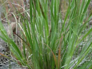 One-spike Oat Grass (Danthonia Unispicata) is a perennial grass in the Poaceae family with easy care difficulty. It requires low watering and full sun or partial shade light in USDA hardiness zones 6-9. This plant is safe for cats and dogs.