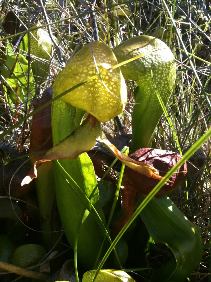 Darlingtonia californica is a carnivorous perennial plant native to Northern California and Oregon, known for its distinctive tubular, pitcher-shaped leaves that trap insects.