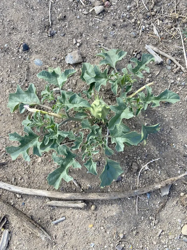 Datura quercifolia is a small shrub known for its distinctive oak-shaped leaves and spiny fruit.