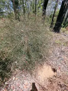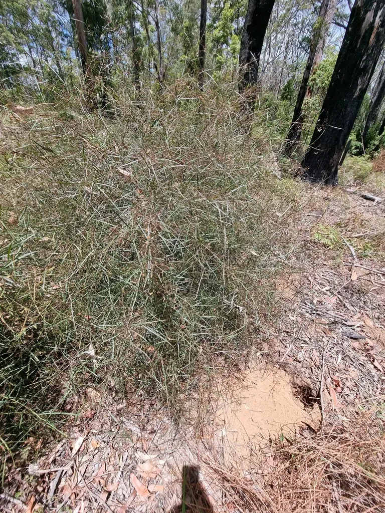 Daviesia wyattiana is a sparse shrub native to eastern Australia, growing 1 to 2.5 meters tall with linear phyllodes and distinctive pea-shaped flowers.