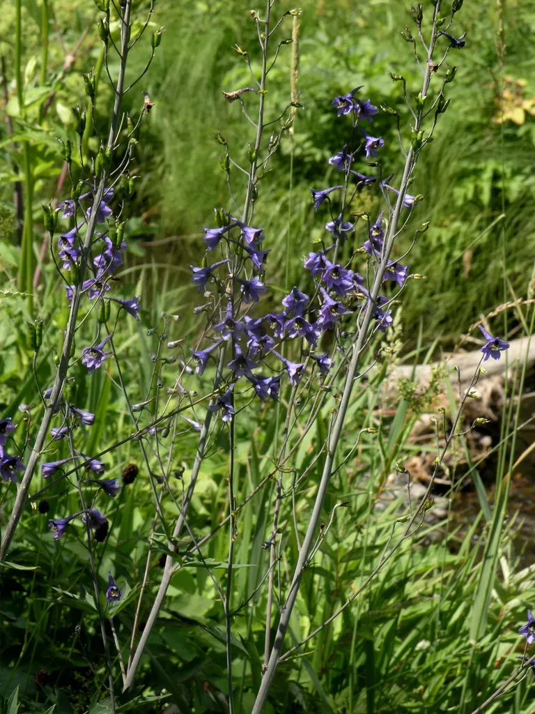 Delphinium elatum is a tall, herbaceous perennial known for its striking spikes of blue, violet, pink, or white flowers.