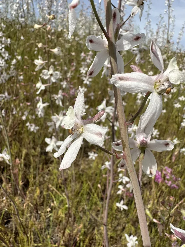 Pinoche Creek Larkspur (Delphinium Gypsophilum) is a plant in the Ranunculaceae family with moderate care difficulty. It requires moderate watering and moderate light.