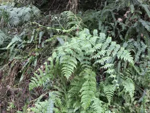 Dennstaedtia scandens is a scrambling, rhizomatous fern native to tropical Asia and Pacific islands, known for its climbing habit and fern-like foliage.