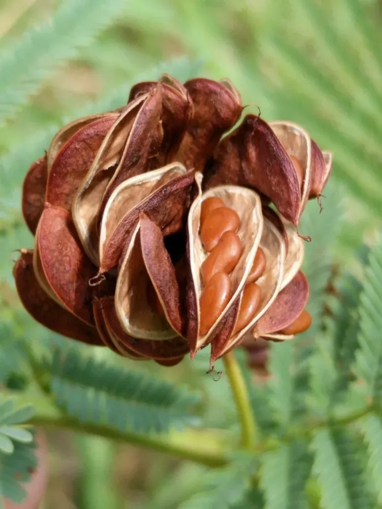 A perennial leguminous forb native to central and southern United States, recognized for its ball-shaped clusters of small whitish or greenish flowers and distinctive seed pods.