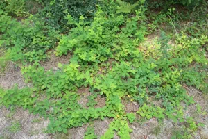A perennial herbaceous plant native to North America, known for its trifoliate leaves and blue to purple flowers.