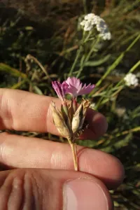 Dianthus borbasii is a perennial subshrub native to Eastern Europe, Kazakhstan, and the Caucasus region, known for its compact growth and delicate pink flowers.