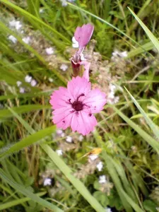 Dianthus pontederae is a perennial herbaceous plant in the Caryophyllaceae family, native to Eastern Europe, including Bulgaria and Italy, typically found in dry meadows.