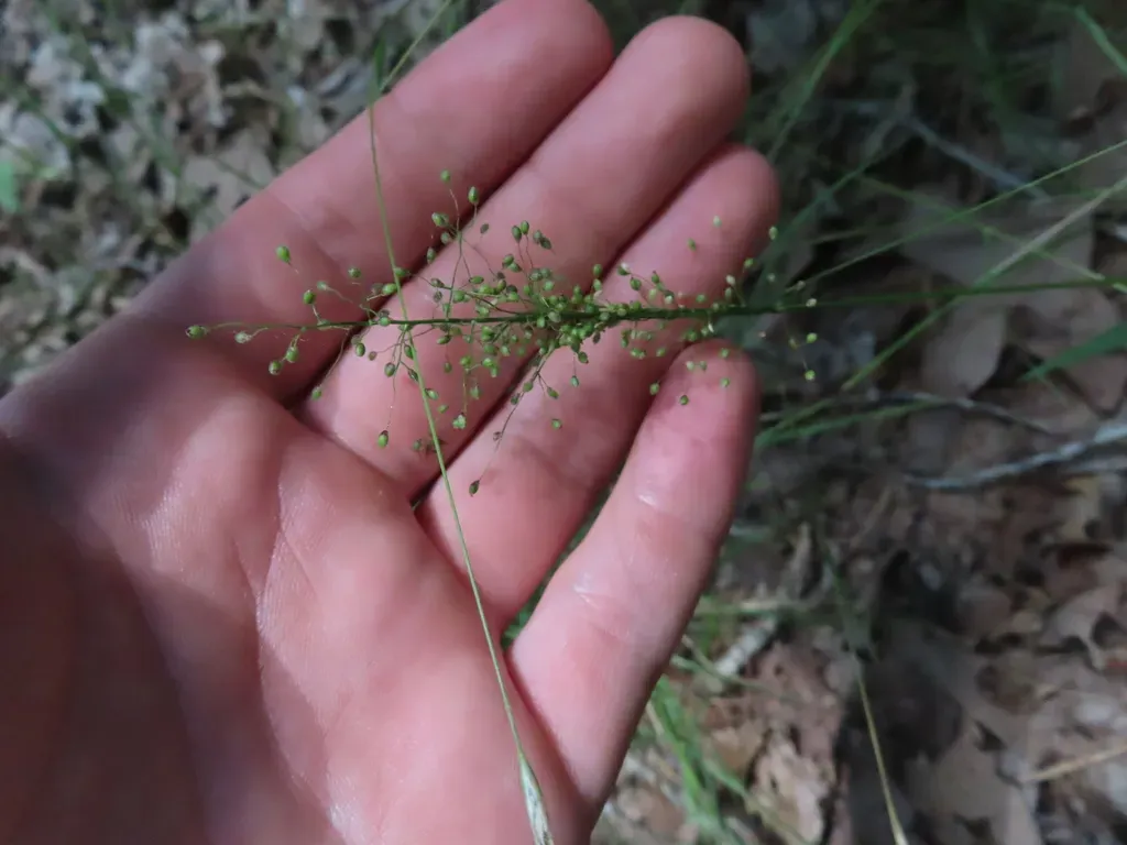 Dichanthelium polyanthes is a perennial grass known for its tufted clumps and many small spikelets, typically found in sandy, seasonally inundated wetlands and open woods.