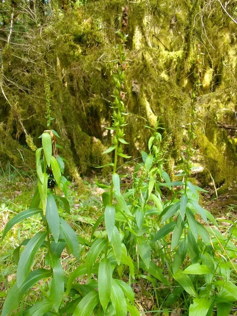 Digitalis lutea is a perennial herbaceous plant known for its slender stalks and pale yellow trumpet-shaped flowers.
