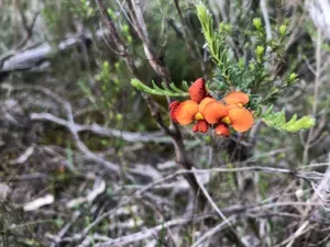 Dillwynia hispida, commonly known as Red Parrot-pea, is a species of flowering plant in the family Fabaceae endemic to south-eastern Australia. It is an erect shrub with orange and red flowers.