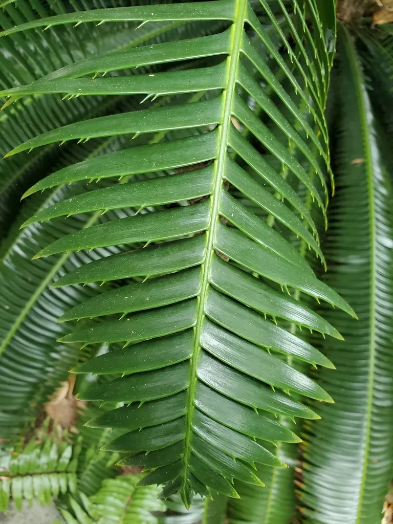 Dioon spinulosum is a large, slow-growing cycad native to Mexico, known for its tall, palm-like appearance with stiff, upright light green leaves.