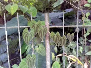 Dioscorea dodecaneura is a perennial climbing vine known for its striking variegated foliage and ornamental use.