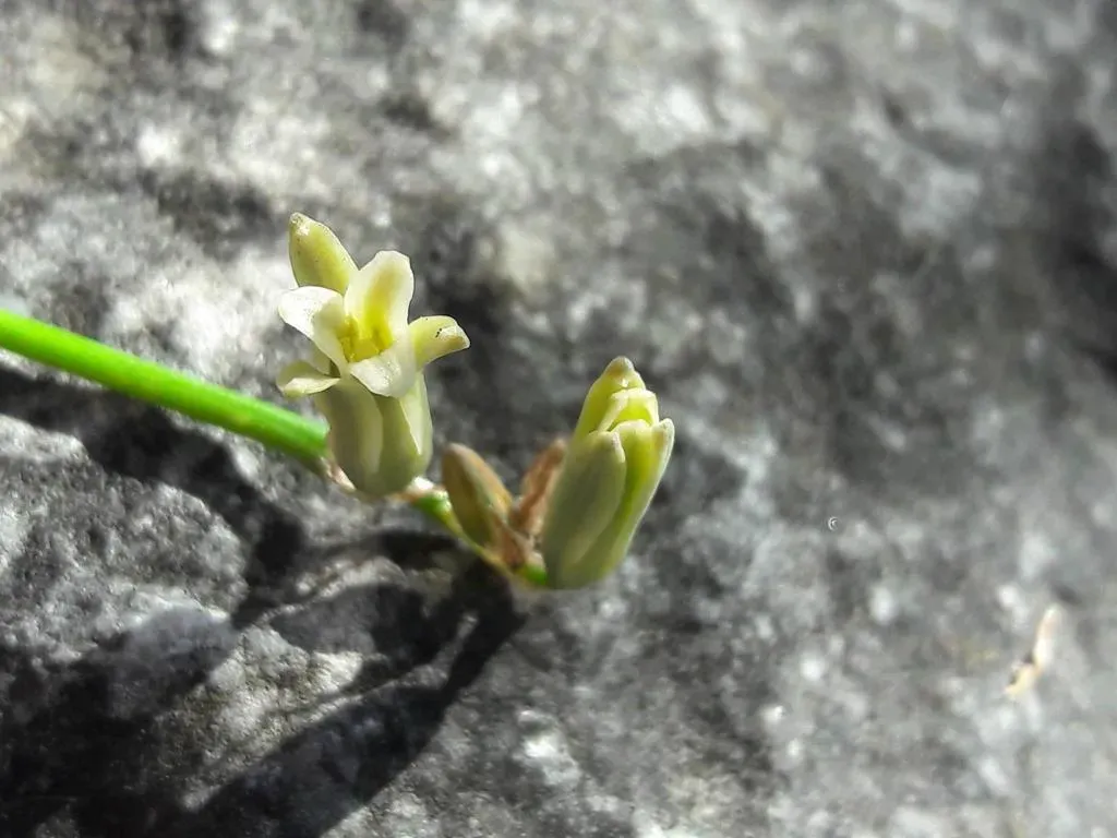 Dipcadi serotinum is a bulbous perennial plant known for its late flowering habit and distinctive brownish tubular flowers.