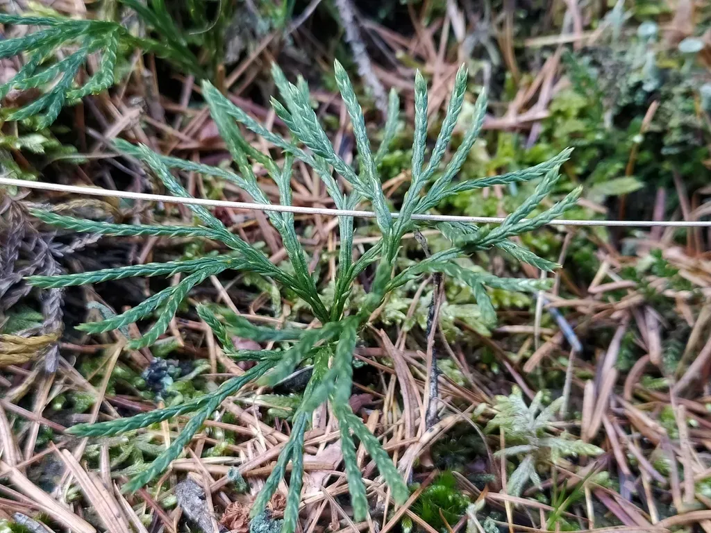 Diphasiastrum tristachyum is a clubmoss species native to North America, known for its distinctive blue-green branches and preference for dry, sandy soils in coniferous forests.