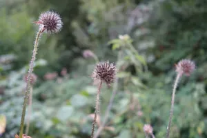 Dipsacus pilosus, known as small teasel, is a biennial flowering plant in the Caprifoliaceae family, characterized by its small, globose flower heads and sparsely prickly stems.