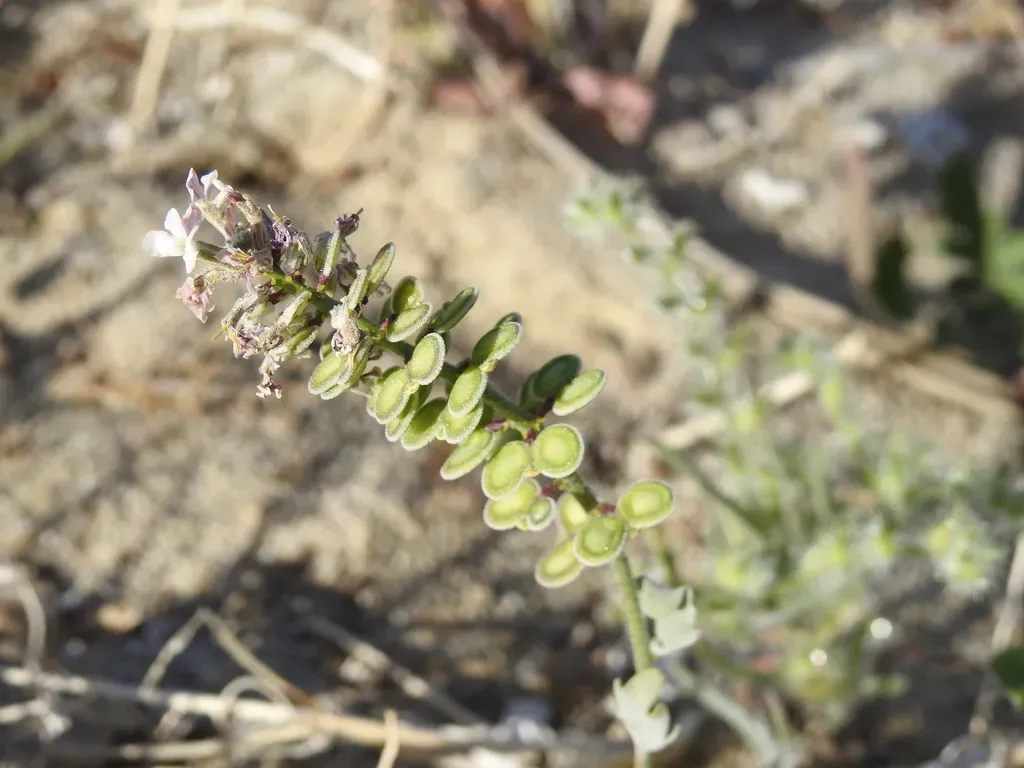 Dithyrea californica is an annual herbaceous plant native to California and southwestern North America, belonging to the mustard family (Brassicaceae).