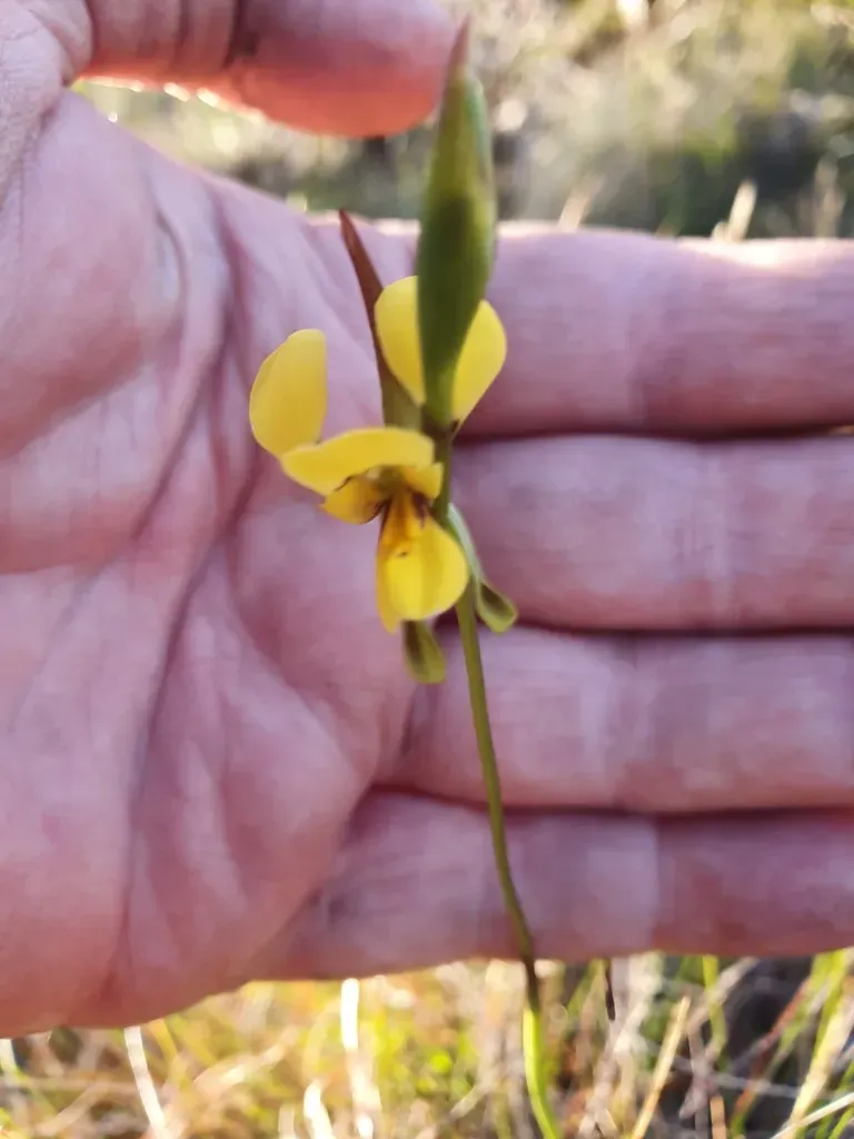 Diuris aurea, known as the golden donkey orchid, is a tuberous, perennial terrestrial orchid native to eastern Australia, notable for its bright yellow flowers with brown markings.