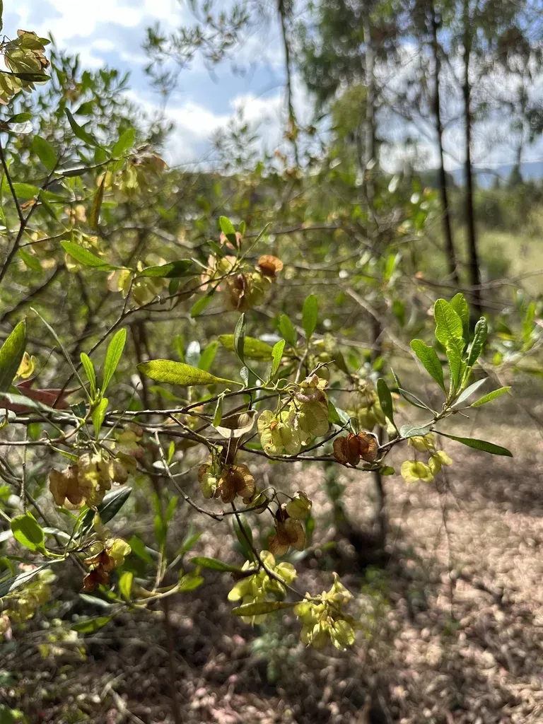 Dodonaea viscosa is a fast-growing shrub or small tree known for its glossy leaves and attractive seed capsules.