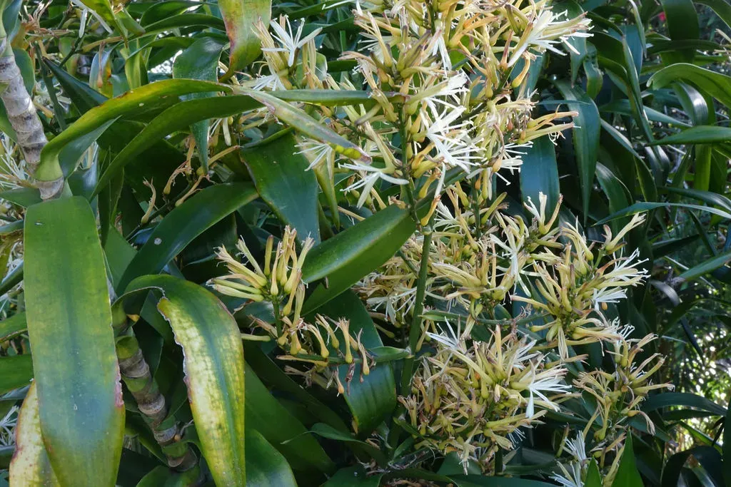 Narrow Leaf Dracaena (Dracaena Angustifolia) is a perennial shrub in the Asparagaceae family with easy care difficulty. It requires moderate watering and partial shade or filtered_light light in USDA hardiness zones 10-12. This plant is toxic to cats and dogs — keep it out of reach of pets.
