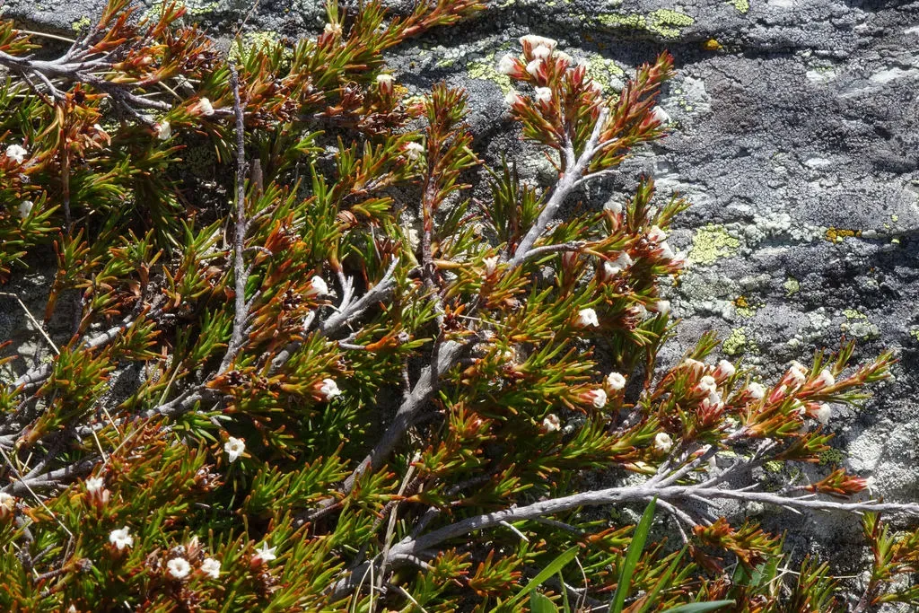Dracophyllum pronum is a procumbent scrambling shrub or subshrub endemic to the South Island of New Zealand, growing 1–25 cm tall with a prostrate growth habit.