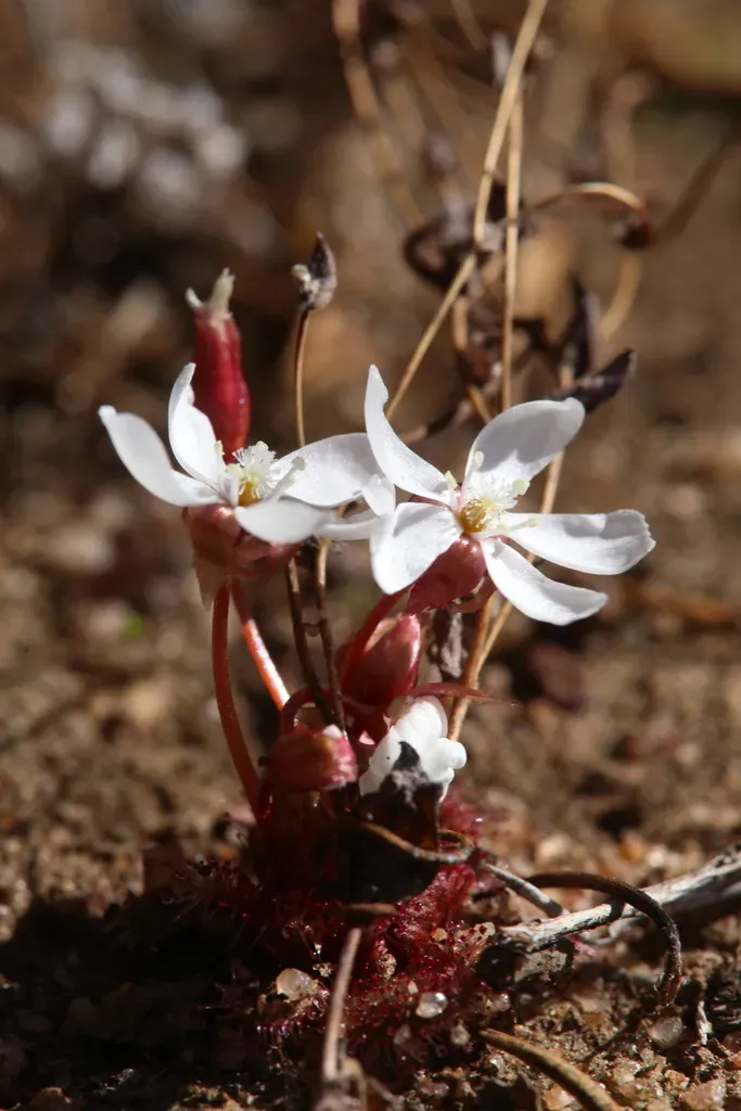 Drosera bulbosa is a perennial tuberous carnivorous plant endemic to Western Australia, known for its variable leaf color and shape.