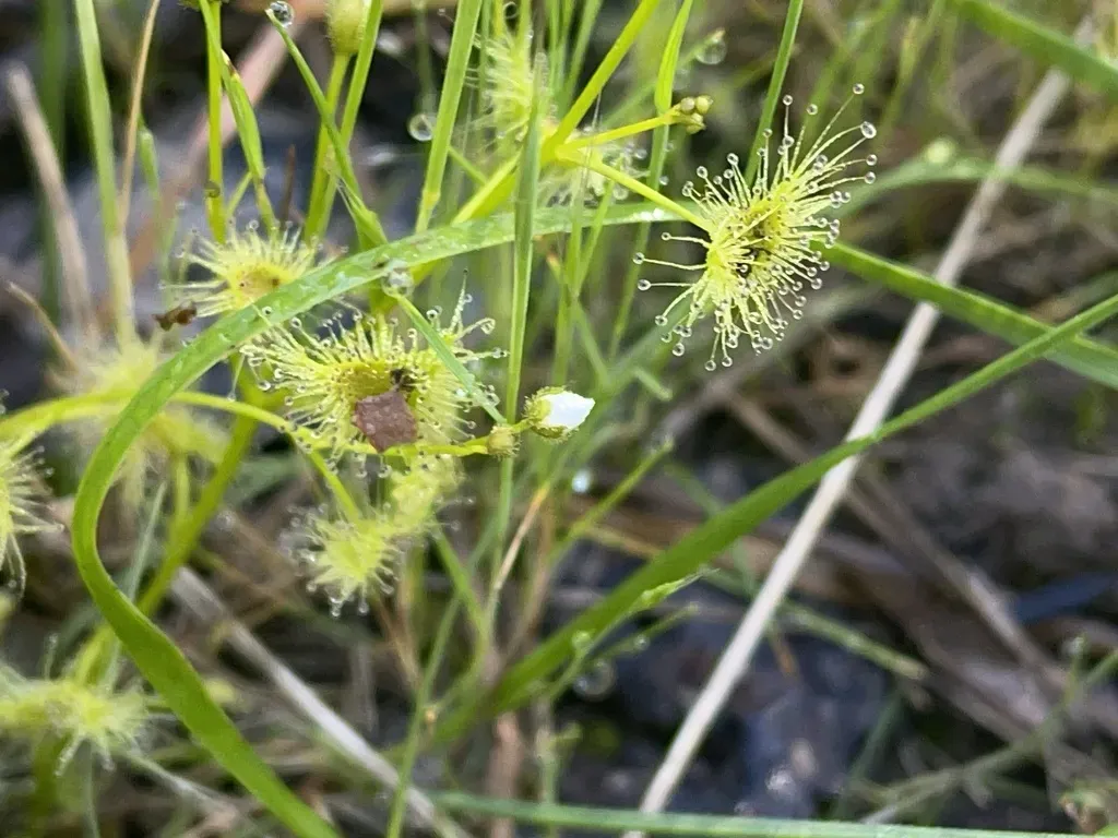 Grassland Sundew (Drosera Hookeri) is a perennial herb in the Droseraceae family with moderate care difficulty. It requires high watering and full sun or partial shade light in USDA hardiness zones 8-10. This plant is safe for cats and dogs. It can be grown indoors.