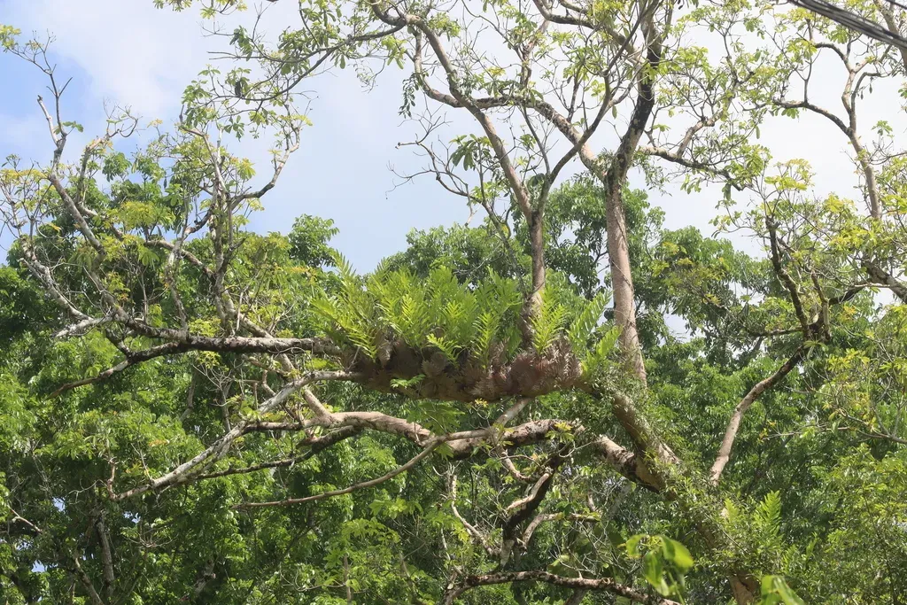 Drynaria quercifolia is a robust, deciduous epiphytic fern with a long, creeping rhizome, growing up to 1 meter tall.