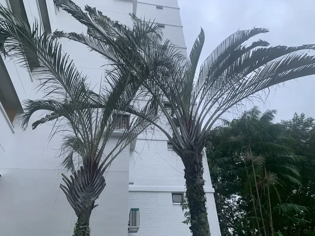 Dypsis decaryi, commonly known as the Triangle Palm, is a striking palm native to Madagascar, characterized by its unique three-sided trunk and elegant feather-like fronds.
