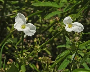 A large aquatic plant native to South America, known for its broad ovate leaves and white flowers.