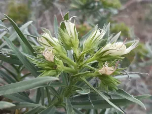 Ajinajo (Echium Aculeatum) is a perennial shrub in the Boraginaceae family with moderate care difficulty. It requires moderate watering and full sun light in USDA hardiness zones 9-11. This plant is safe for cats and dogs.