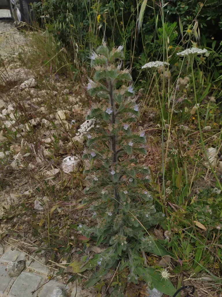 Echium italicum is a biennial or perennial herb native to the Mediterranean Basin, known for its pale yellowish-white flowers and stiff hairy foliage.