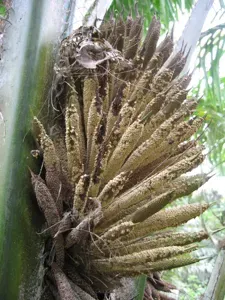 Elaeis guineensis, commonly known as the African oil palm, is a tropical palm species cultivated mainly for its oil-rich fruit.