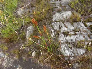 Elegia mucronata is a robust, tufted, evergreen perennial plant native to the Cape Province of South Africa, known for its upright, cane-like stems and spreading clump-forming habit.