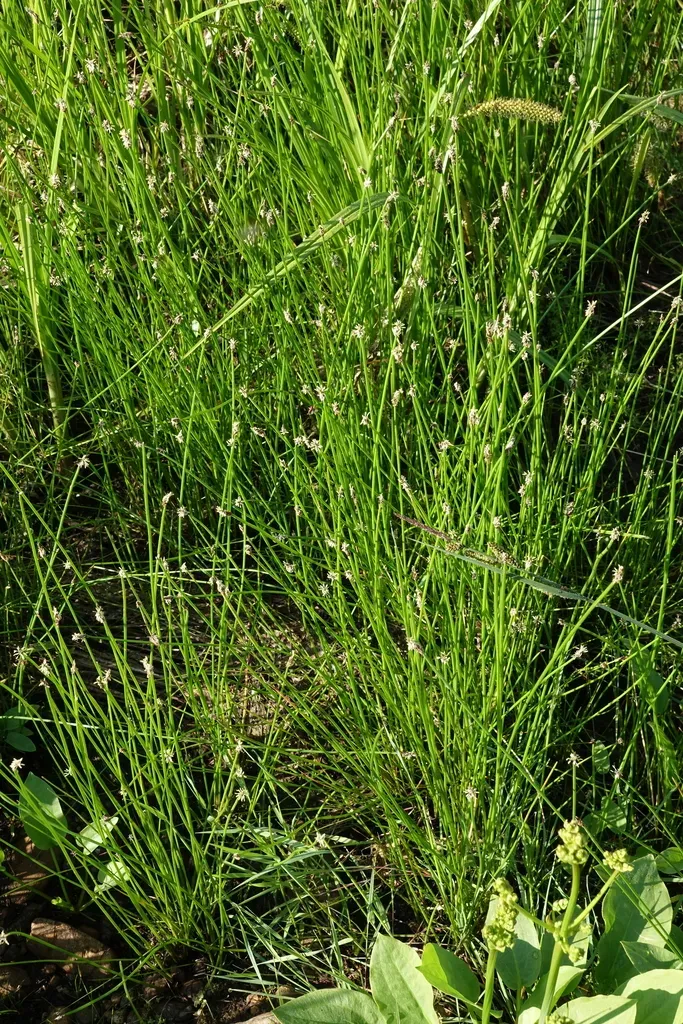 Eleocharis palustris is a rhizomatous, wetland obligate perennial sedge native to marshes, wet meadows, springs, rivers, pond/lake margins, shores, ditches, and brackish waters.