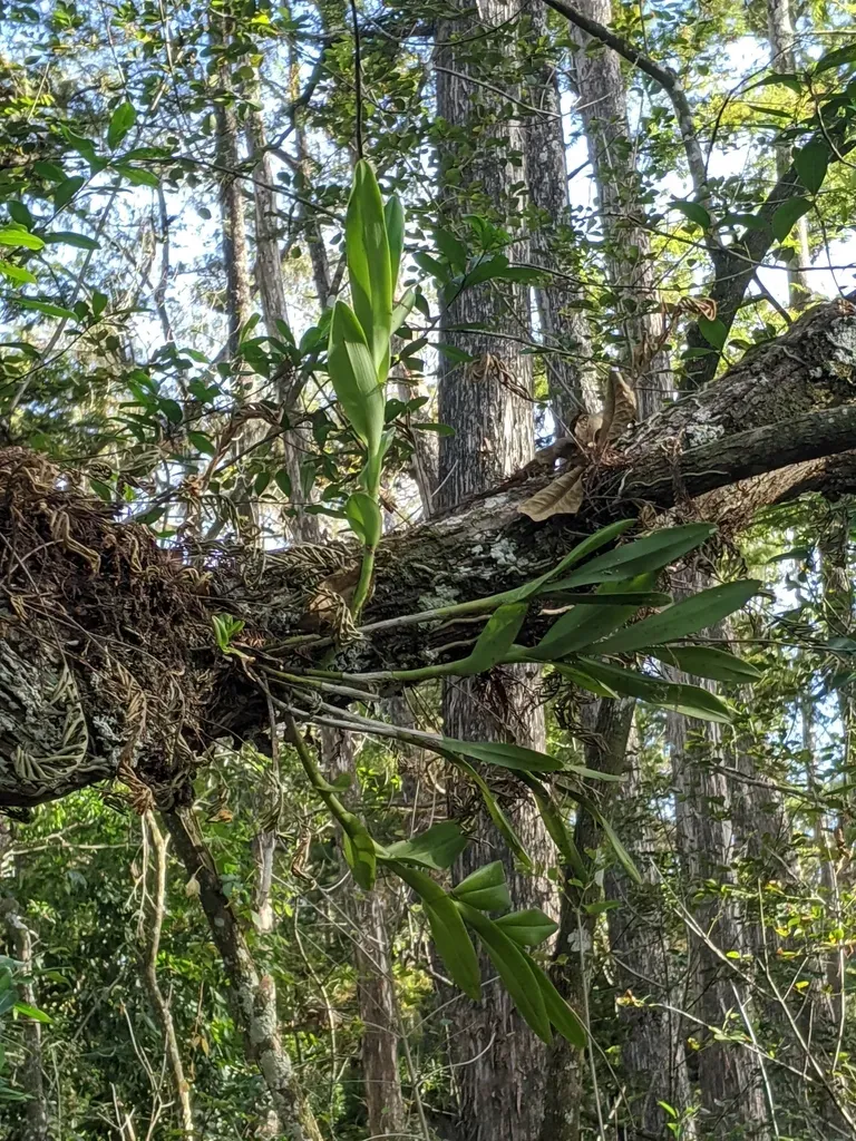 A perennial epiphytic orchid native to Florida swamps, known for its clusters of greenish flowers and adaptation to swampy habitats.