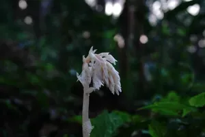 Epipogium roseum is a leafless, saprophytic terrestrial orchid known for its delicate, cream to pinkish flowers and a fleshy, hollow flowering stem.