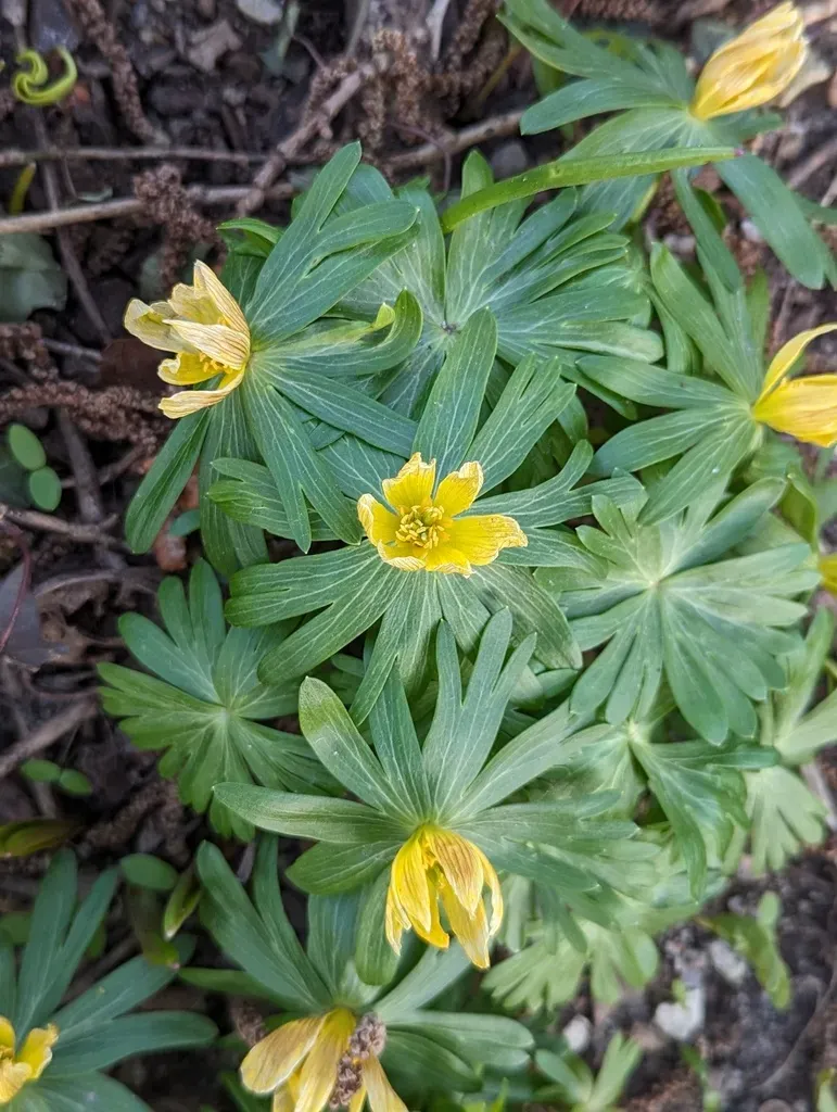 A tuberous perennial with bright yellow, buttercup-like flowers appearing in late winter to early spring.