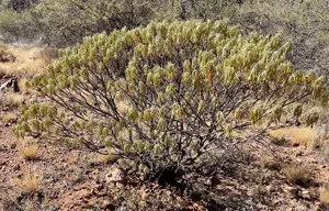 Eremophila freelingii is a small to medium shrub native to Australia, known for its sticky, hairy lance-shaped leaves and tubular flowers in shades of white, lilac, or pale blue.