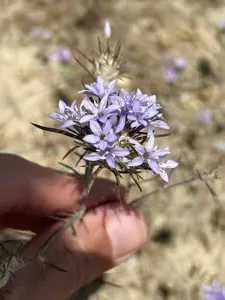 Eriastrum densifolium is a perennial herb native to California and parts of western North America, known for its erect stems and star-shaped blue flowers.