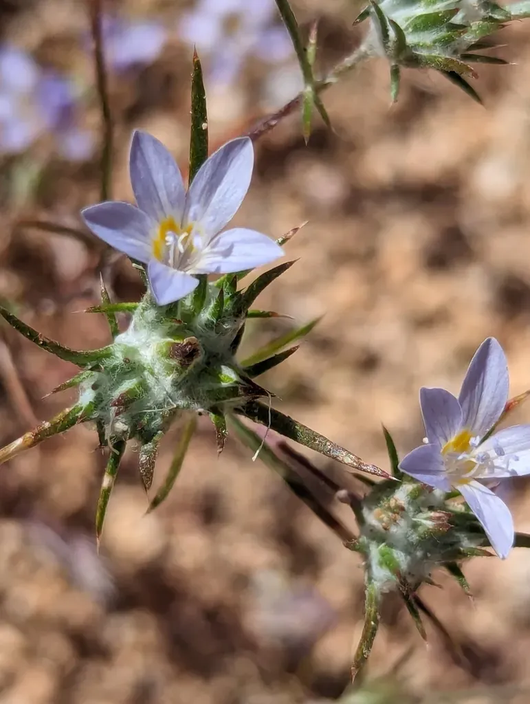 Desert Woollystar (Eriastrum Eremicum) is a annual herb in the Polemoniaceae family with easy care difficulty. It requires drought-tolerant watering and full sun light in USDA hardiness zones 8-11. This plant is safe for cats and dogs.