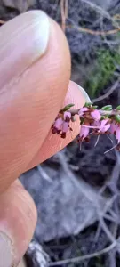 Erica anguliger is a compact, low-growing shrublet with needle-like foliage and pink bell-shaped flowers.