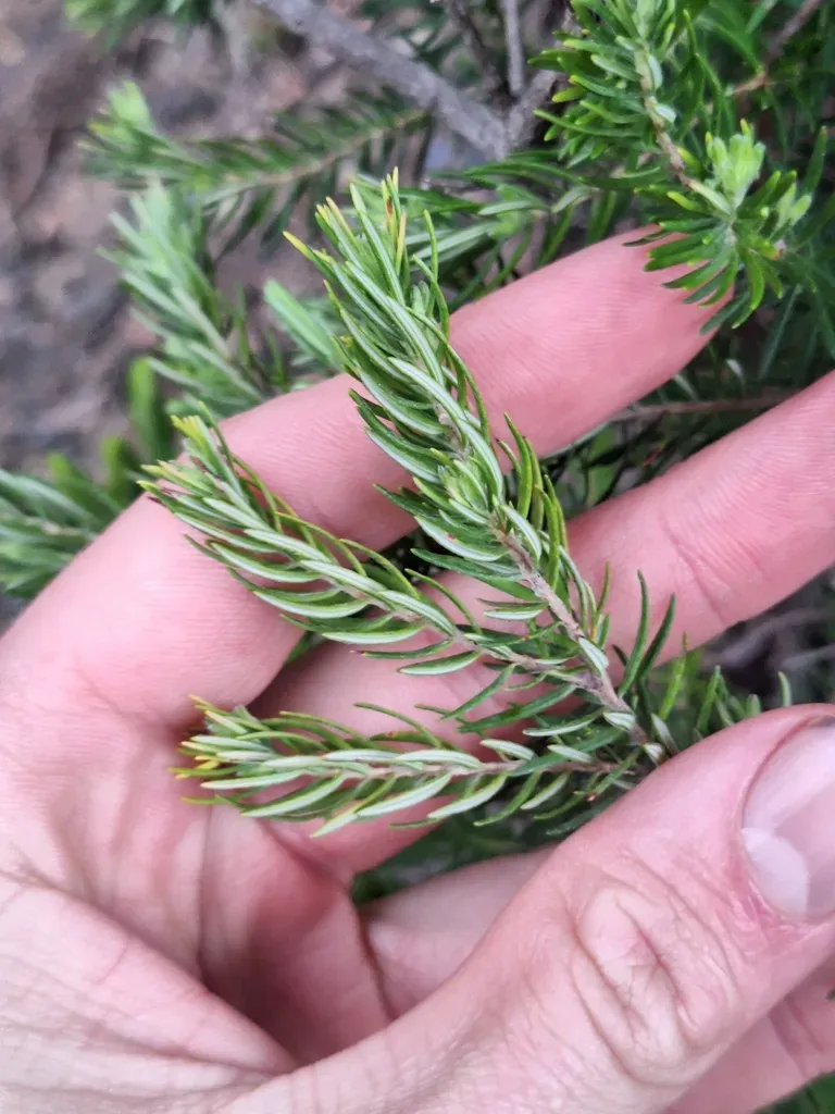 Erica caffra is an erect evergreen shrub or small tree native to South Africa, known for its attractive white to cream bell-shaped flowers and lance-shaped hairy leaves.