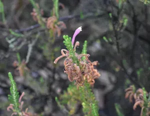 Dense-flowered Heath (Erica Densifolia) is a perennial shrub in the Ericaceae family with moderate care difficulty. It requires moderate watering and full sun or partial shade light in USDA hardiness zones 9-11. This plant is safe for cats and dogs.
