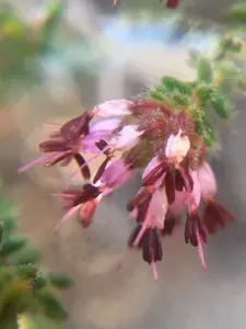 Erica glabella is a charming evergreen shrub native to the southwestern Cape Province of South Africa, notable for its small needle-like leaves and tubular pink flowers.