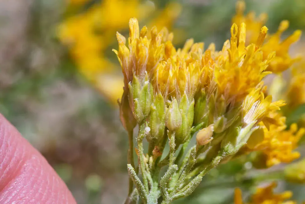 Ericameria cooperi is a perennial shrub native to the arid regions of the southwestern United States and northern Mexico, known for its bright yellow flowers and adaptation to desert environments.