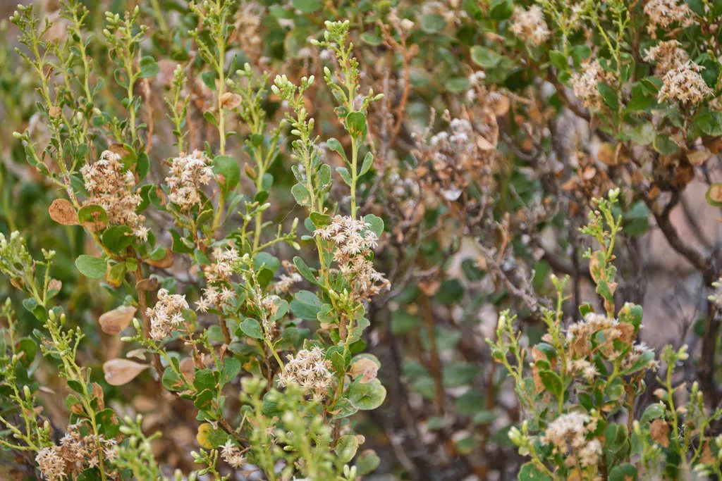 Ericameria cuneata is a small, hairy shrub native to California and western North America, typically found in rocky crevices.