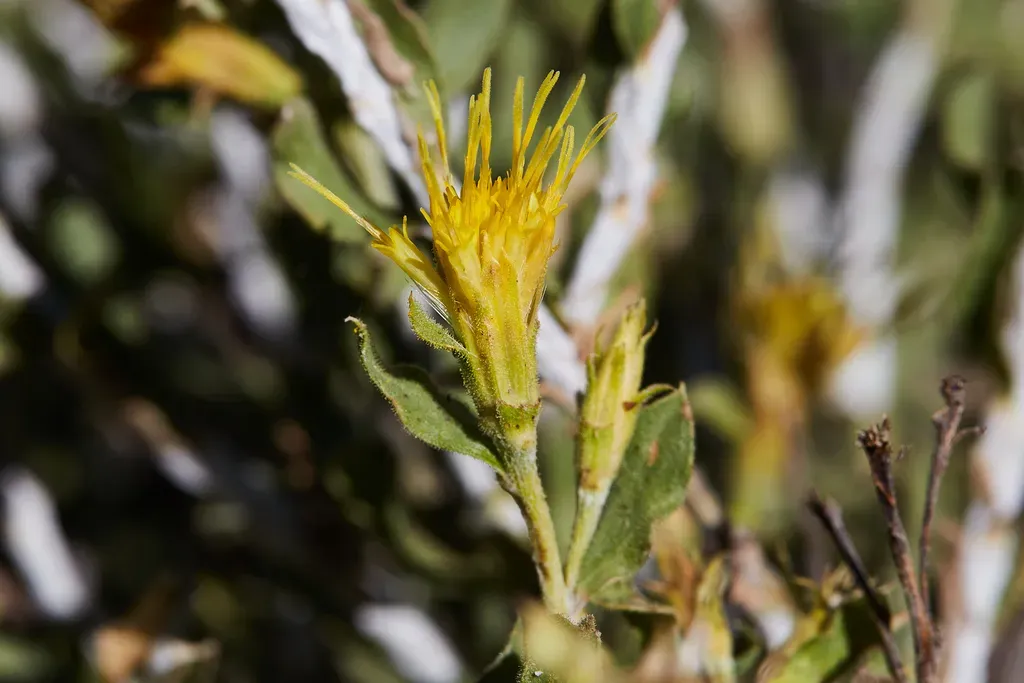 Whitestem Goldenbush (Ericameria Discoidea) is a plant in the Asteraceae family with moderate care difficulty. It requires moderate watering and moderate light.