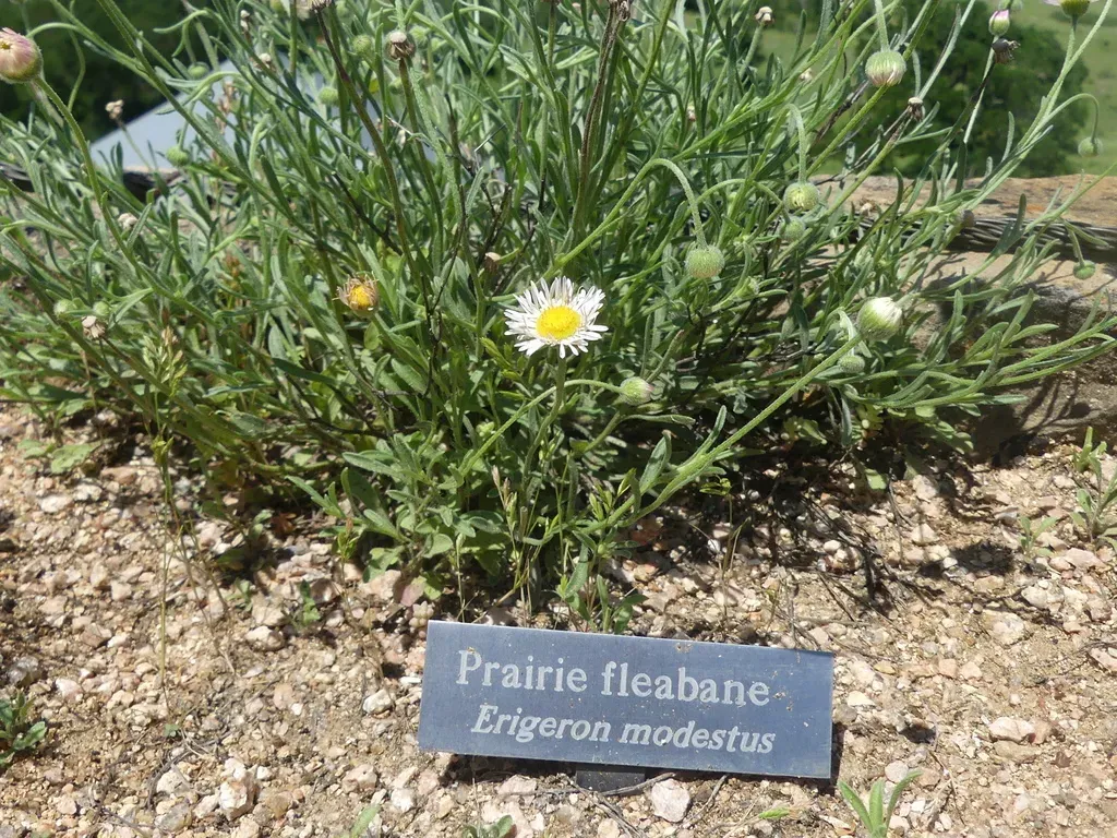 Plains Fleabane (Erigeron Modestus) is a perennial herb in the Asteraceae family with easy care difficulty. It requires low watering and full sun or partial shade light in USDA hardiness zones 5-9. This plant is safe for cats and dogs.