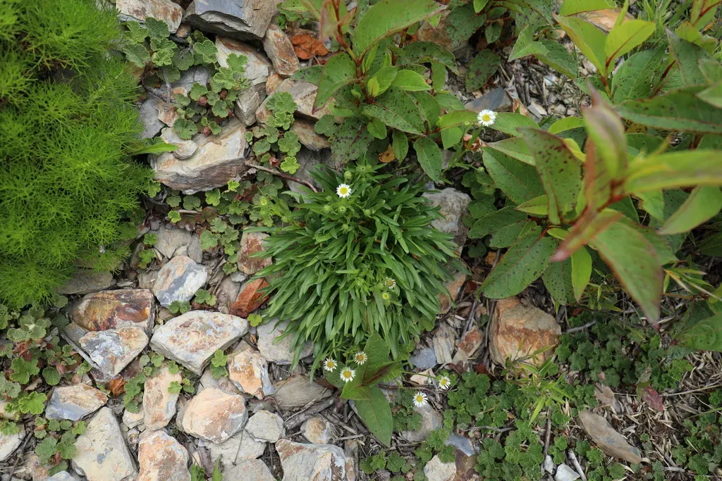 Erigeron morrisonensis is a perennial flowering plant native to Taiwan's mountainous regions, characterized by its daisy-like flowers with a yellow center and white to pink petals.