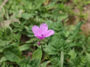 Erodium acaule is a perennial plant species in the Geraniaceae family, native to the Mediterranean region, characterized by its acaulescent (stemless) growth and small size.